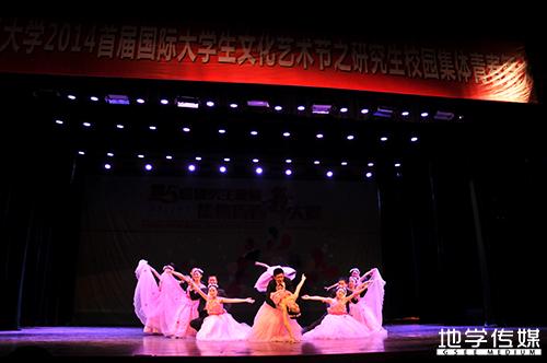 BEATS的8组队员经过一个月的艰苦训练,自信十足地站在了今晚的舞台上。舞台上女生身着粉红色的舞衣、头戴鲜花、面容精致,宛如花仙子;男生身着燕尾服,风度翩翩。当优美的音乐响起,BEATS的同学们专业的舞姿伴随着音乐缓缓开始,整齐的动作,默契的交流,飘逸优美的舞姿,为在场的观众和评委老师舞出了地学研究生的青春活力。值得一提的是,最后的一个男生托举女生旋转5圈的高难度动作博得了满堂喝彩。