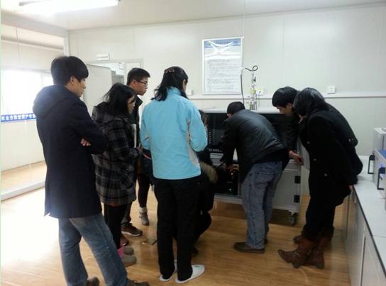 2013年12月10日在九里校区的四川省环境空气质量综合实验室,来自广州禾信分析仪器有限公司的王新魁工程师,对该公司的在线单颗粒气溶胶质谱仪(SPAMS)的使用及数据处理进行培训。参与培训的人员有四川省监测站的刘培川工程师、廖乾邑工程师、曹攀工程师、张巍工程师,还有公司环境工程实验中心的龚正君主任、宋宏艺老师、陈钰老师、王东梅老师、刘了老师及部分研究生。