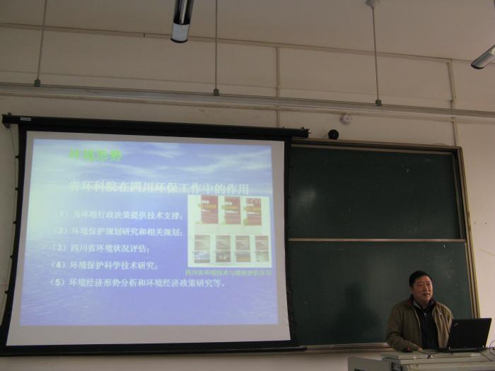 讲座开始前,副经理欧阳峰教授简要介绍了叶宏经理的学术成就,并和大家一起对叶经理的莅临表示了热烈的欢迎。随后,叶宏研究员在热烈的掌声中开始了精彩的讲座。叶宏研究员首先介绍了全国和四川省的环境形势,然后结合三个案例深入介绍了“不退化观点”提出的背景及相关的三个开放性讨论问题,提出了如何在我国实施环境质量不退化战略的设想。结合当前城市垃圾处理厂、变电站、手机基站、公立私立医院餐饮项目、市政道路建设等社会公益性项目实施困难及一般建设项目实施受阻的现状,叶宏研究员提出了“环境影响评价中的心理问题”,从避邻心理、从众心理、恐惧心理、逆反心理、地点依赖等方面分析了其产生原因,提出了可能的解决办法。随后,结合危险废物鉴别标准要求和污染物排放和所处水域的功能矛盾2个案例,叶宏研究员分析了技术规范与标准的矛盾问题,探讨了解决矛盾的思路。