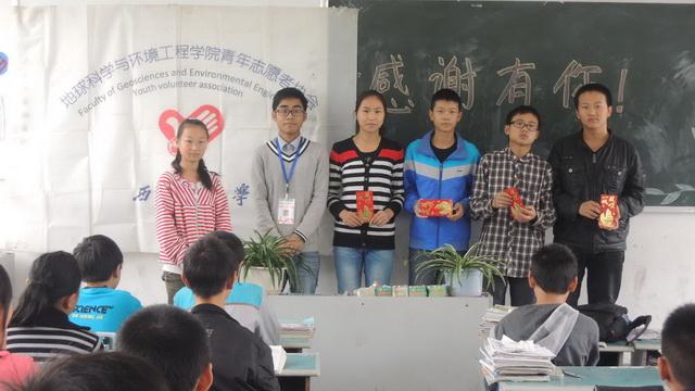 在活动中,地学青协的志愿者们将大家丢弃或闲置不用的军训服收集起来,在外面的集市统一售出,再用获得的资金购买物品捐赠给贫困山区的孩子们。