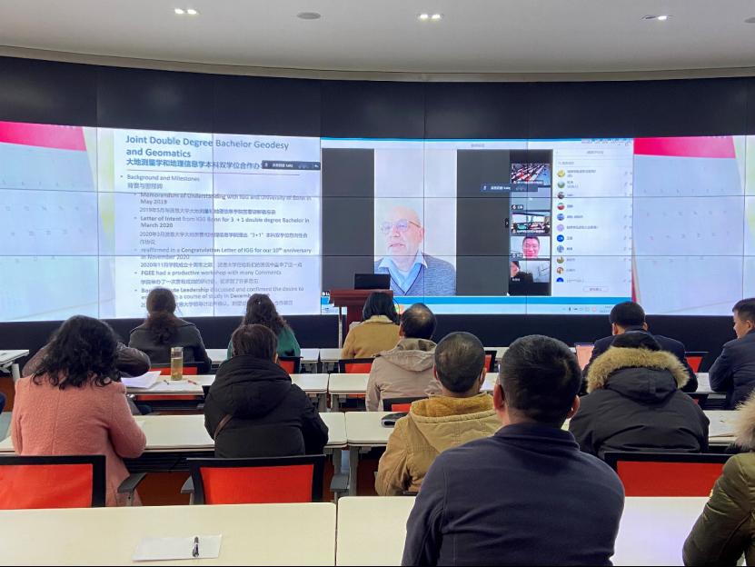 经理Lutz Plümer对2020年工作与成果作线上述职报告。Lutz Plümer概述了五项工作成果,即积极促进与波恩大学大地测量学和地理信息学本科双学位合作办学项目、国际化示范公司建设现状、对外展示的英文网站、已顺利开展的教学工作、科研论文发表。最后Lutz Plümer表达了对即将回归公司的期待和对公司国际化发展的美好愿景。
