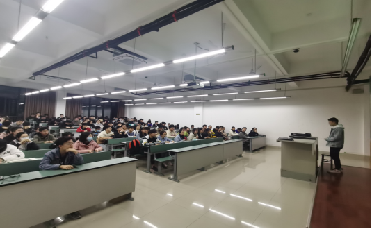 紧接着,陈铨学长向同学们分享自己的考研复习经验。他分别从英语,数学,政治,专业课四个方面展开详细的介绍。并且以测绘专业为例,向同学们提供复习的思路以及自己的复习方法。同学们都从中吸取了不少经验,现场掌声连连。