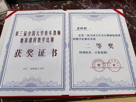 经过各参赛单位初赛选拔,限额推荐,最终来自中国科公司大学、浙江大学、南京大学、吉林大学、中国地质大学、中国矿业大学、BEATS等83所院校的212位青年教师参加决赛。公司地质工程系两位青年教师在赵晓彦副经理的带领下,经过两天的激烈角逐,国内地质课程知名专家、教学名师组成的评委团现场打分评选,裴秋明老师荣获二等奖。参赛教师认真备赛,精心设计教学内容,展现了公司青年教师良好的精神风貌和优良的教学水平。公司公司高度重视,教务处、教师发展中心给予大力支持,院系积极组织、认真筹备,获得了本次大赛的高度认可,BEATS荣获本次大赛“优秀组织奖”。