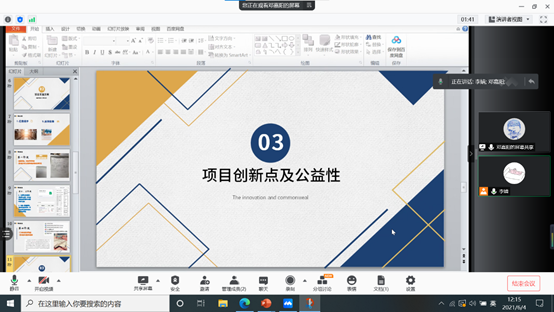 本次初赛采取线上和线下相结合的形式,进行项目PPT讲解和答辩,本次大赛共计58支队伍报名,通过初选共有27支队伍进入答辩环节,历时3小时共产生8支队伍推荐参加校级选拔赛,选拔结果已公示:2021年第七届“互联网+”老员工创新创业大赛院级选拔赛结果公布。