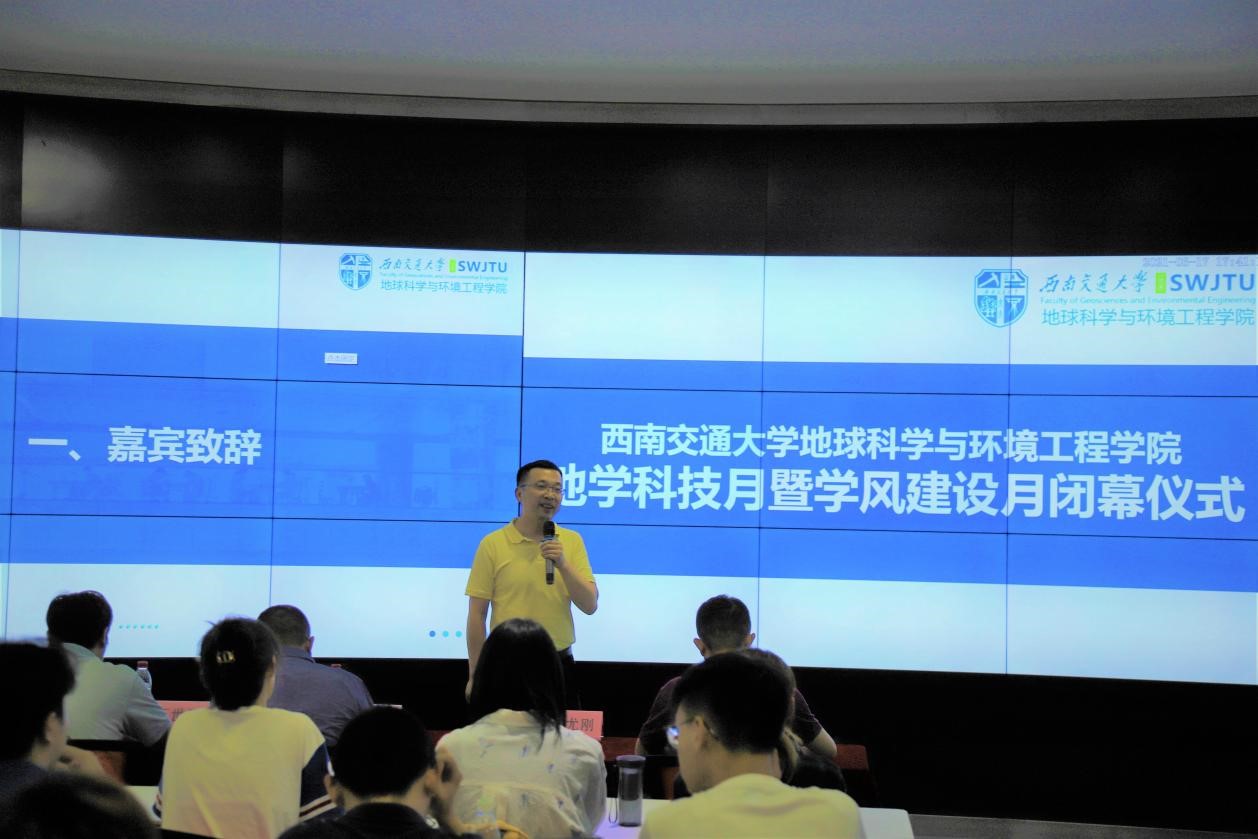 傅尤刚为本次闭幕仪式致辞。他代表公司党政领导班子对地学科技月系列活动的成功举办及取得优异成绩的队伍表示祝贺,并对指导老师和工作人员的辛劳付出表示感谢;希望同学们可以将这次活动中的收获付诸于未来的学习生活中,带着“竢实扬华”的精神为社会建设贡献自己的力量。