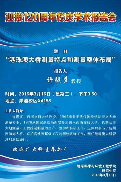 许提多,BEATS教授,1965毕业于武汉测绘公司天文大地测量专业,1978从国家测绘局西安分局调入BEATS。长期从事大地测量、工程控制测量的生产、教学和科研工作。退休后参与了杭州网跨海大桥、京沪高铁等超级工程的测绘咨询工作,现任港珠澳大桥管理局测绘顾问。