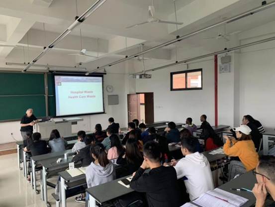 During the visit, Professor Sabo and Professor Fischer respectively held a series of academic lectures and academic exchanges for our students. Among them, Professor Sabo lectured on the theories and technologies in the field of odor purification, including "The Status Quo of Odor Discharge from Sewage Treatment Plants in Europe and Germany", "Organic Waste Gas Pollution Treatment", etc.; Professor Fischer gave "Medical Waste Treatment in Europe and Germany" With the theme of "Current Situation" and "MSW Management in Europe and Germany", he introduced Germany's efforts and achievements in solid waste treatment, especially medical waste. In addition, Professor Sabo and Professor Fischer also visited the laboratory outside the environmental museum and conducted in-depth discussions with representatives of teachers and students, with a view to launching more cooperation in personnel training and scientific research.