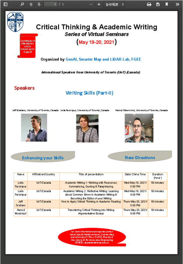 Critical Thinking & Academic Writing Series of Virtual Seminars (May 19-20, 2021)