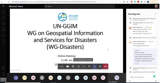 The meeting of the Working Group on Geospatial Information and Services for Disasters (WG-Disasters) was conducted on Monday, April 19, 2021, at 7 PM (local time). The meeting took about 2 hours and discussed the work plan and tasks of each group on disasters and Strategic Framework Assessment. Saeid (Adam) Pirasteh from the Faculty of Geosciences and Environmental Engineering (FGEE) represented the Southwest Jiaotong University in this meeting. On behalf of the Southwest Jiaotong University (SWJTU), Saeid delivered the willingness to contribute toGOAL: 1 FOSTER COMMUNICATION AND AWARENESS RAISING on delivering presentations at regional meetings, webinars, conferences etc. (Task Group C) and develop publications on WG and activities (Task Group A, B, C & D),and Goal: 2 IMPLEMENT THE STRATEGIC FRAMEWORK FOR DISASTERS on consulting with Secretariat on the global consultation process for the strategic framework (Task Group A). He also proposed the announcement of the joint event 6thEarth Observation Environmental Changes (EOEC) and 9thGeoinformation Technologies for Disaster Management (GiT4NDM), which will be held in the Xiamen University Malaysia Campus on December 3-5, 2021 (https://www.ierek.com/events/EOEC-7th&GiT4NDM-9th#threeconferencesonetheme).