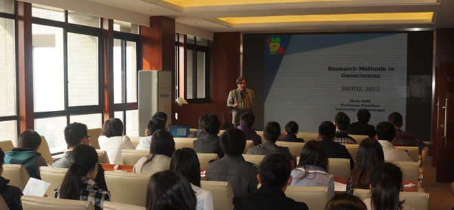 On 18thMarch 2014, Professor Christopher Gold gave his first lecture to our staff members and postgraduate students. It was the third time for Prof. Gold to visit our Faculty, since he had been appointed as the visiting professor. At this year, two courses will be offered by Prof. Gold,i.e.‘Digital Elevation Model’ and ‘Geo-scientific Research Methodology’.