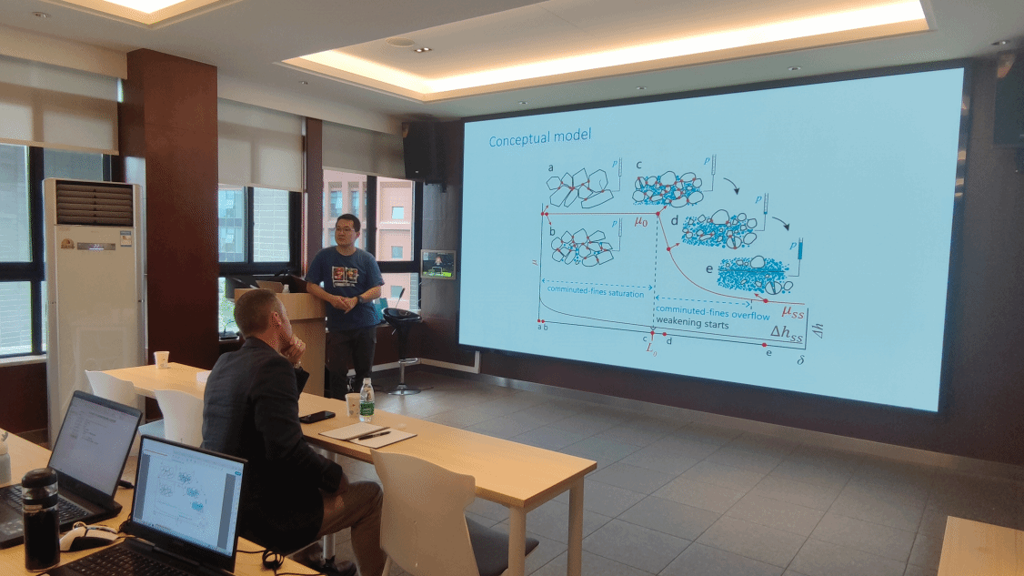 为推动国际化示范公司建设,开阔师生国际视野,提高师生科研能力,营造良好学术氛围。2023年9月25日下午,受BEATSBEATS程谦恭教授团队邀请,东京大学Slow-to-Fast地震学实验物理课题组常承睿研究员赴公司做题为《Granular Friction in Multi-scale Earth Dynamics: from Landslide to Earthquake》的学术报告。常承睿特聘研究员毕业于京都大学地球与行星科学系,主要从事与地震、滑坡和火山等大规模地球物理过程相关的实验与统计物理研究,近期主要集中于颗粒材料的摩擦行为、蠕变与破坏时间预报相关问题。该报告属于程谦恭教授团队举办的“创源大讲堂”系列讲座之一,由王玉峰特聘研究员主持,共计五十余人积极参与其中。