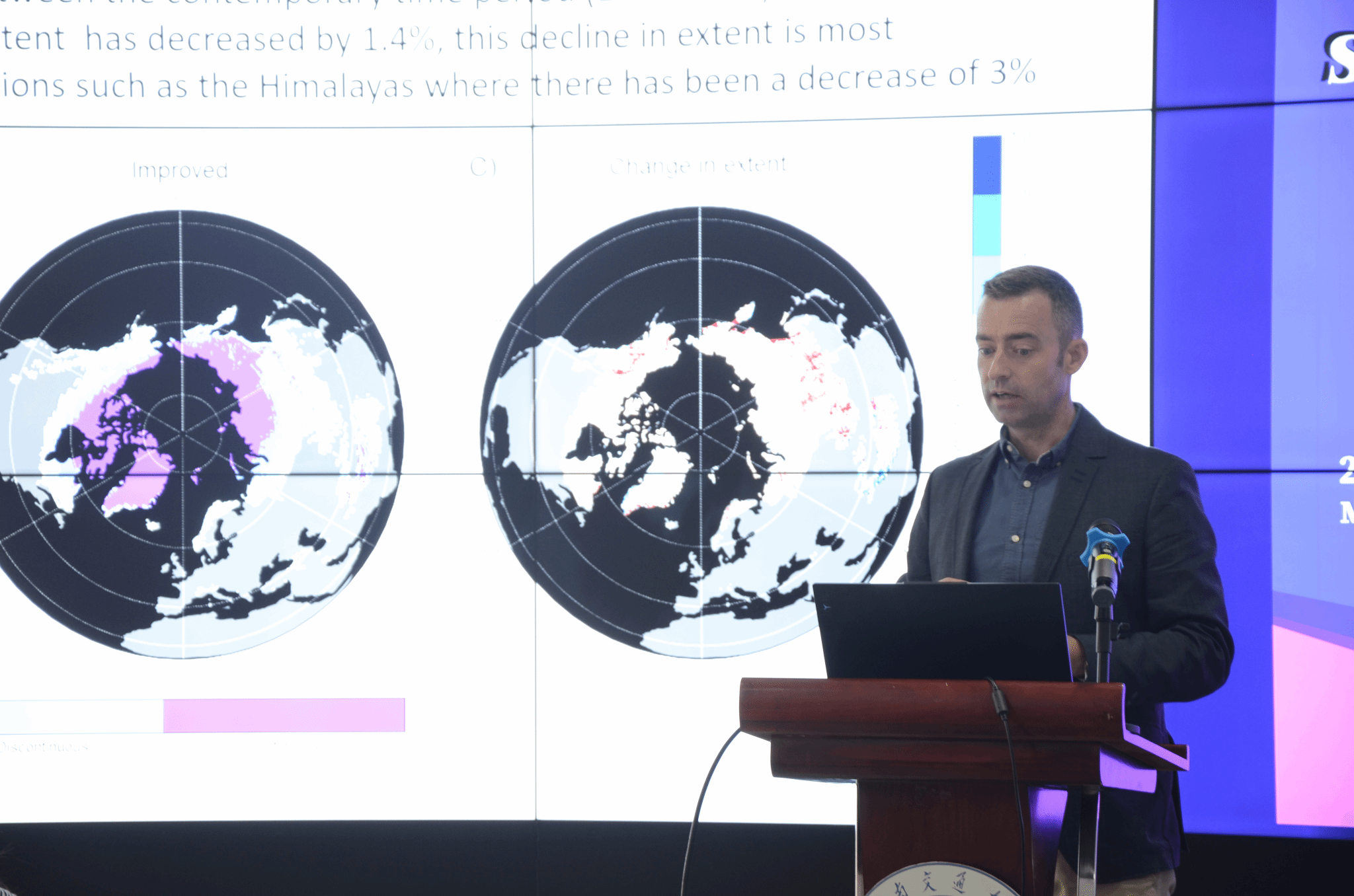 聚焦全球变暖趋势下冰川退缩所引发的高速远程滑坡、冰湖溃决等地质灾害问题,Dunning教授选取“Supraglacial landslides in a warming world”作为报告主题,此次学术交流是程谦恭教授团队主办的2023年“创源大讲堂”系列报告之一。报告由王玉峰特聘研究员主持,共有五十余名师生参加。